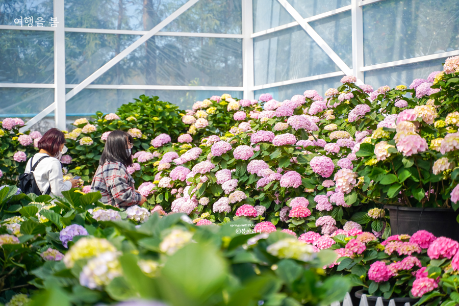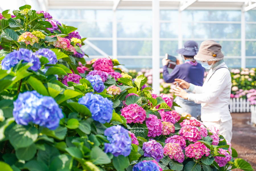 나올 때 온실을 한 번 더 들러 수국을 보고 나온다. 3시 넘어가니까 사람이 더 많아졌다. 그래도 마스크 안 쓴 사람 하나 없으니 안심하고 수국을 구경할 수 있다. 올해는 벚꽃과 겹벚꽃이 빨리 떨어졌으니 그 아쉬움은 빠르게 시작한 수국축제에서 달래보는 것도 좋겠다.