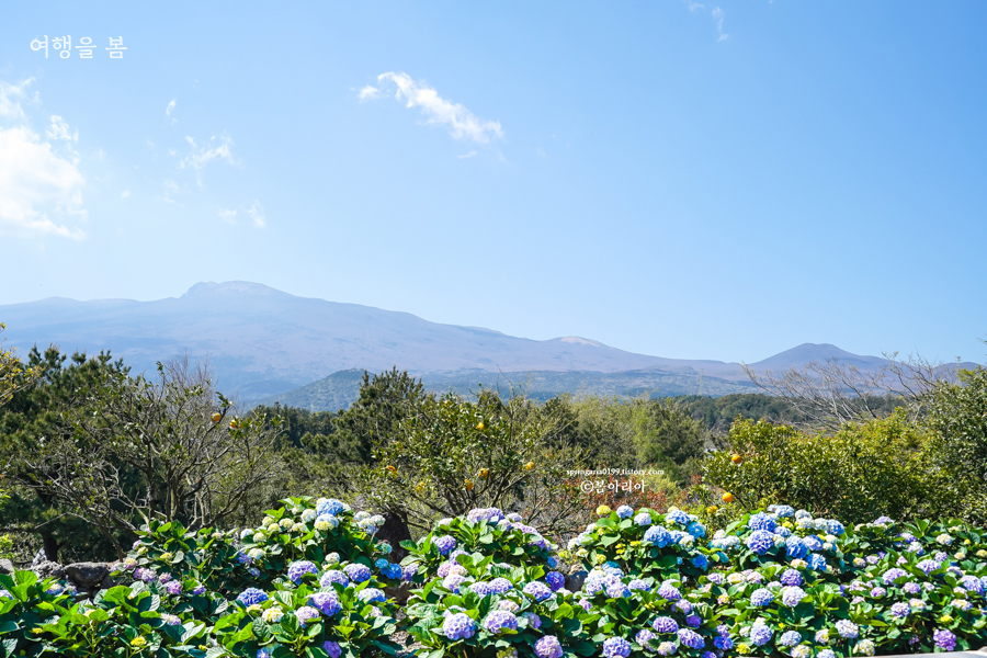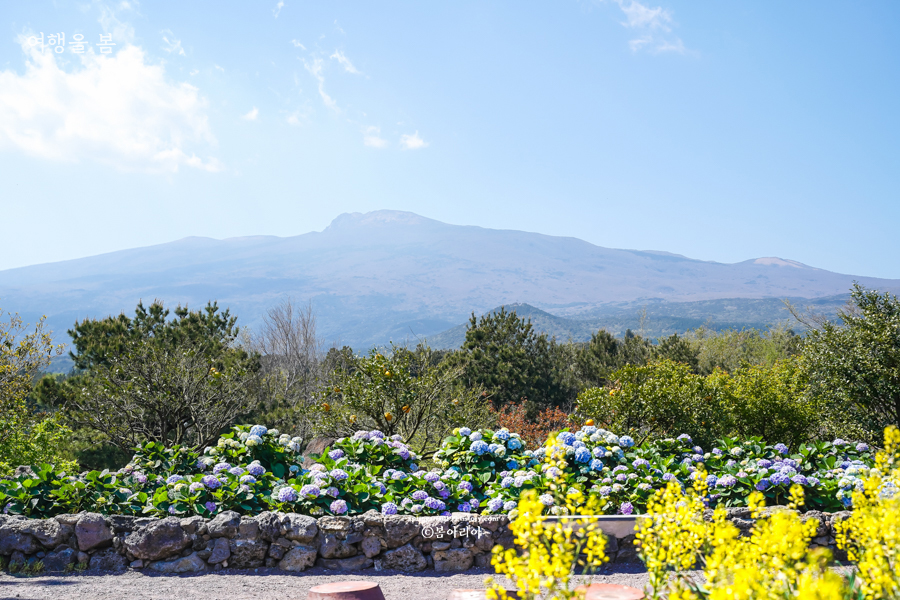 수국이 피어있는 곳이면 어디든 포토존이지만 한라산이 보이는 이곳이야말로 휴애리 자연생활공원을 대표하는 포토존이다. 휴애리 수국축제는 4월 1일부터 시작되었고 축제 시작 후 거의 바로 다녀왔으며 사진처럼 수국이 예쁘게 피어났다. 지금은 수국이 더 탐스러워졌을 것이고, 야외 곳곳에 더 많은 수국길이 생겼다.