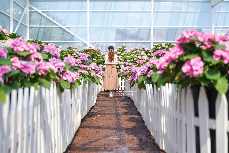 온실이더라도 수국와 함께 사진찍기 충분했다.