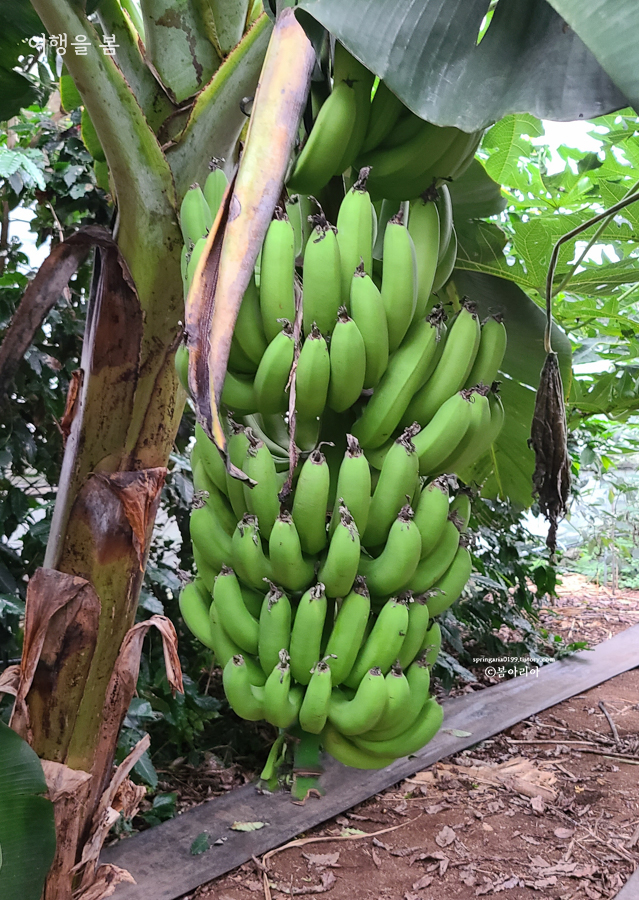 요즘 제주도 바나나가 다시 전성기를 누리고 있다는 뉴스를 얼마 전에 보았는데 열대과일농장 유진팡에서는 바나나를 직접 따고, 다른 열대과일도 직접 딸 수 있다. 그리고 그 자리에서 먹을 수 있다. 내가 방문했을 때는 바나나와 망고를 먹었고, 동남아가 아닌 제주도에서 이런 열대과일 체험을 할 수 있다는 게 이색적이며 즐거웠다. 부모님, 아이와 함께하는 5월 제주도 2박 3일 여행코스로 추천한다.