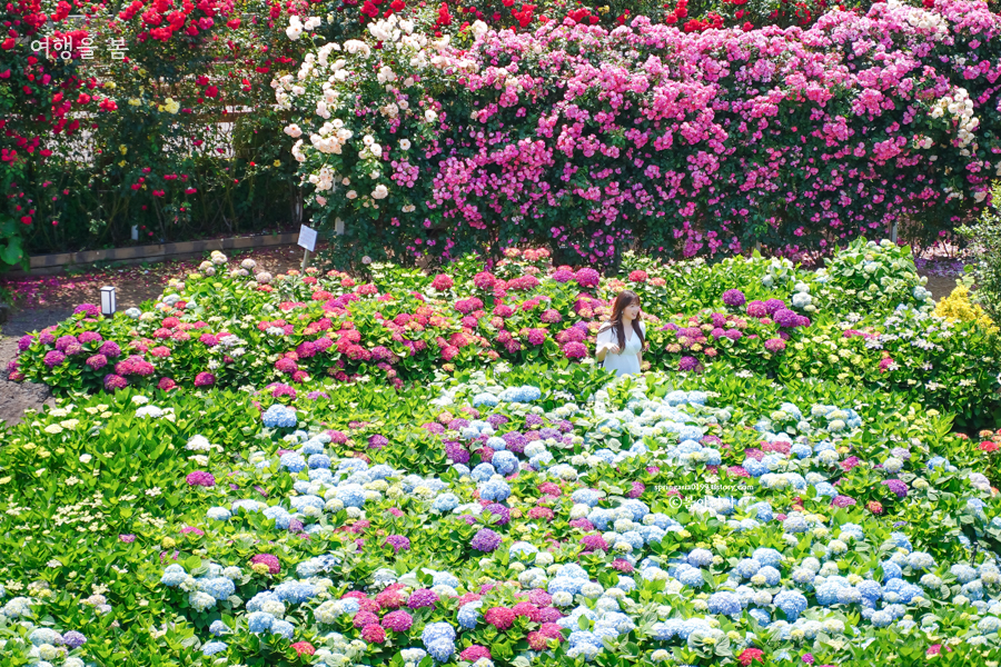 휴애리하면 수국축제, 제주도 수국축제하면 휴애리! 4월 1일부터 수국축제가 시작되었고 산책로 곳곳에서 수국을 볼 수 있다. 5월 초보다는 5월 중순, 5월 중순보다는 5월 말이면 수국은 더 예쁘기에 5월 제주도 가볼만한곳 10곳 어느 시기라도 망설이지 않아도 된다. 수국을 좋아하는 사람이라면 카멜리아힐과 카페 마노르블랑을 추가하도록 하자.