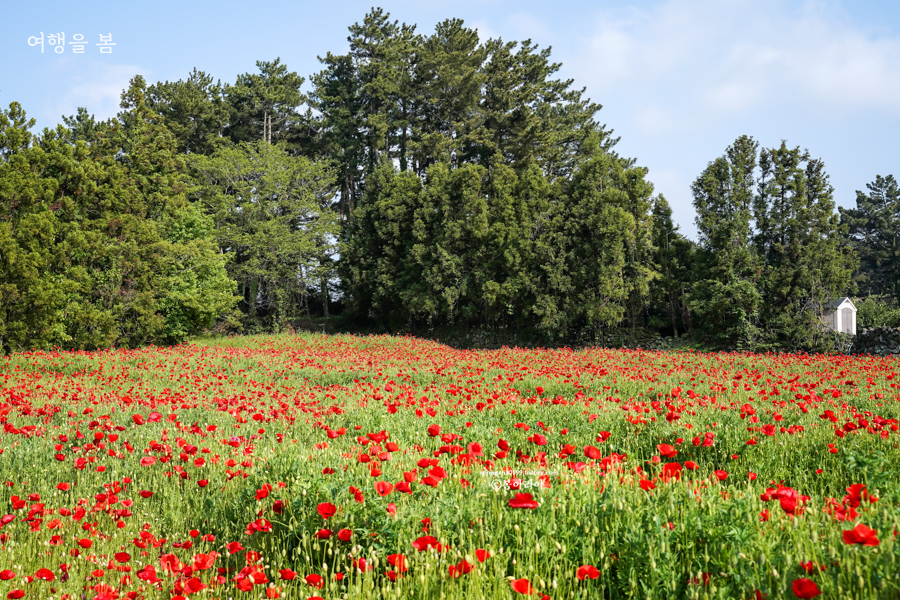 철마다 계절을 대표하는 꽃을 심어놓고 무료로 개방하는 항몽유적지는 애월 가볼만한곳으로도 유명하다. 5월 제주도 가볼만한곳 10곳으로 방문한다면 비밀의 정원에서 꽃양귀비를 볼 수 있다. 초원 위에 잉크로 점을 콕콕 찍어놓은듯 화려함을 뽐낸다. 비밀의 정원은 주차장 바로 옆에 있다.