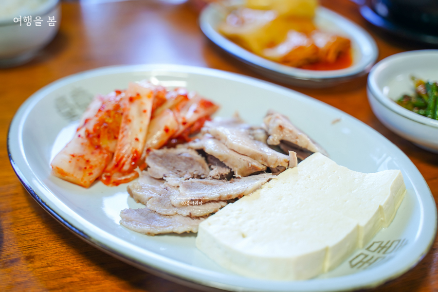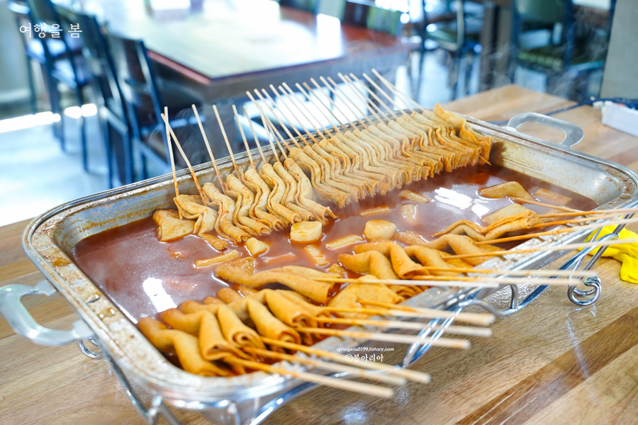 장점은 뷰가 좋고, 매일매일 이곳에서 직접 만든 신선한 두부가 나온다는 점, 8천원 가격에 돔베고기와 어묵, 떡볶이가 서비스로 나온다는 것!