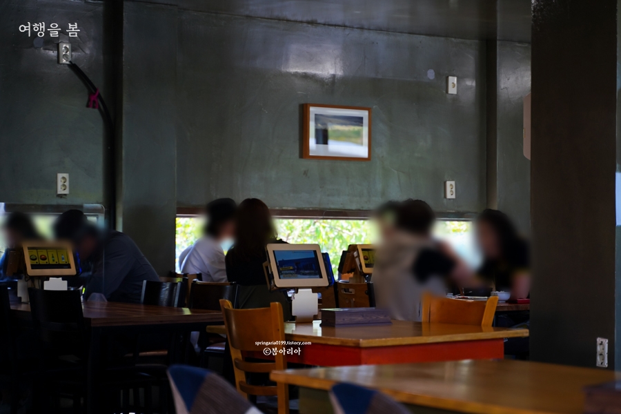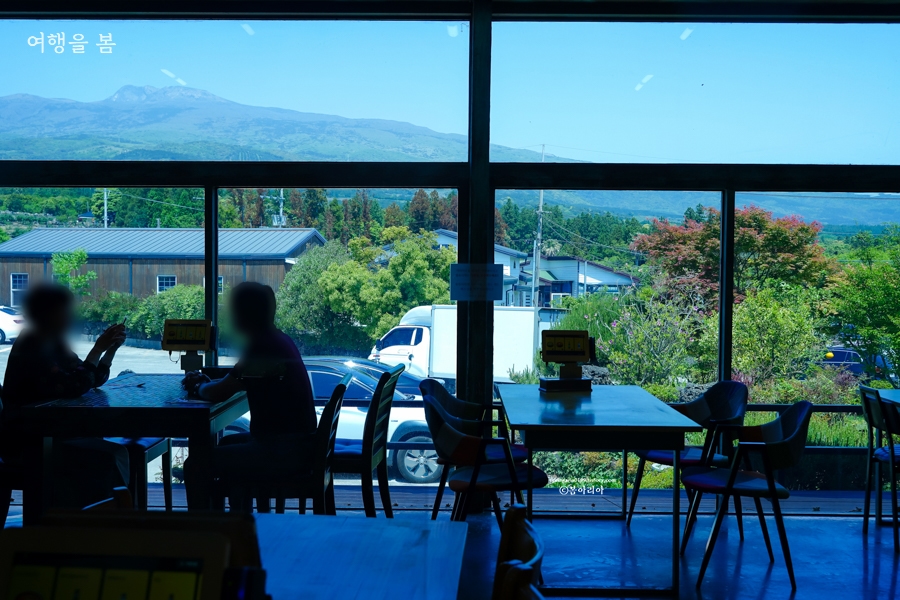 한라산을 볼 수 있도록 유리로 해 놓아 카페 못지 않게 뷰가 좋다. 이쪽에 앉으면 식사하면서 한라산을 볼 수 있고,