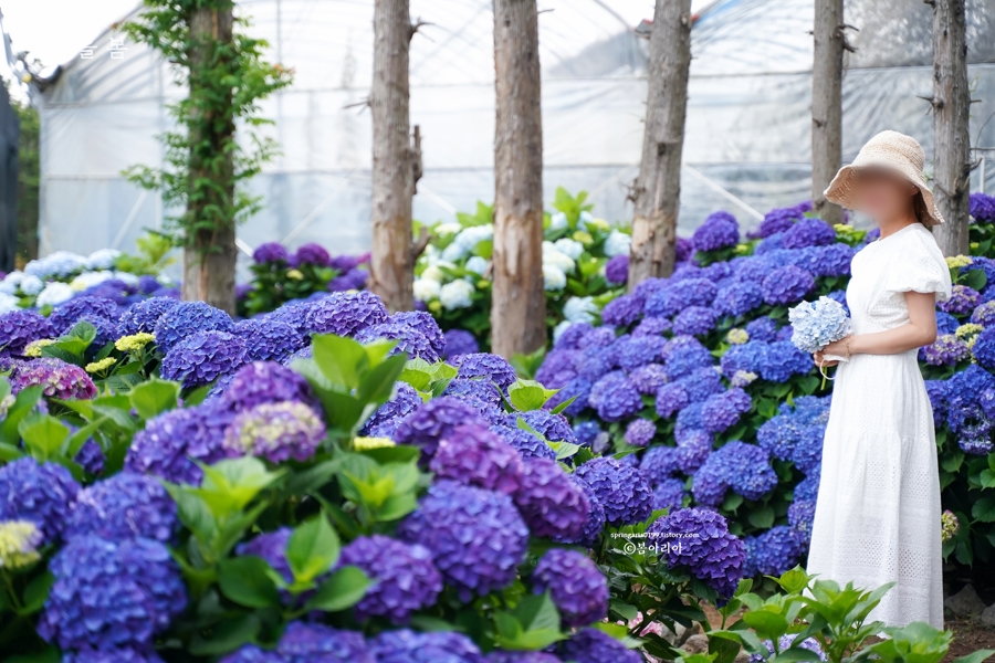 마을 안쪽에 위치하고 있으며 주변에 주택, 교회, 어린이집 등이 있어 일단은 주소를 공개하지 못하는 장소다. 농장 오픈을 준비하고 계셨으므로 어쩌면 올해 정식 오픈하는지도 모르겠다. 지난해는 무료 개방이었으므로 제주도 수국 명소 중에서 으뜸이었고, 사진으로 보는 것처럼 진짜 해외여행 온 것 같은 기분이었다. 사람 한 명 없었고, 주변에는 토끼도 뛰어놀고 있어서 최고였던 제주 수국 명소다.