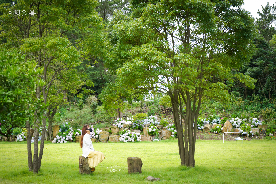 입장료가 비싸서 사람이 많지 않은 곳이다. 제주 투어패스 48시간 프리이용권을 구매하거나 다른 관광지와 묶어서 구매하면 반가격 정도, 혹은 더 저렴하게 입장가능하다. 한라산과 가까운 제주도 수국 명소라 다른 곳보다 개화가 늦은 편이며 공기가 깨끗해서 그런지 다른 곳보다 수국이 깨끗하고 아름답다. 사람이 없는 수국길을 우리끼리 오롯이 즐길 수 있어 너무너무 좋았던 장소다.