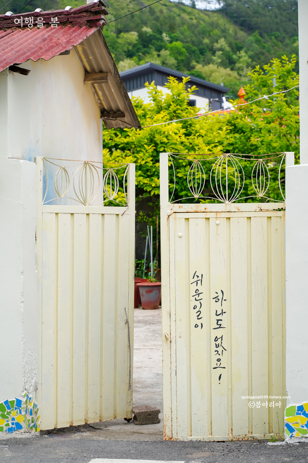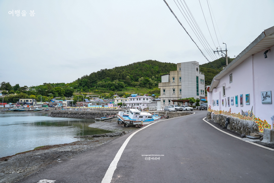 낭도항에 주차를 하고 100년도가식당까지는 걸어서 3 ~ 5분 정도 소요된다. 걸으며 볼 수 있는 풍경은 여유로우면서 포근하다. 화려한 색깔로 색칠한 벽화마을이 아닌 그림을 걸어놓거나 작은 조형물로 장식하여 깔끔하면서 더 낭만적인 풍경을 마주하게 된다.