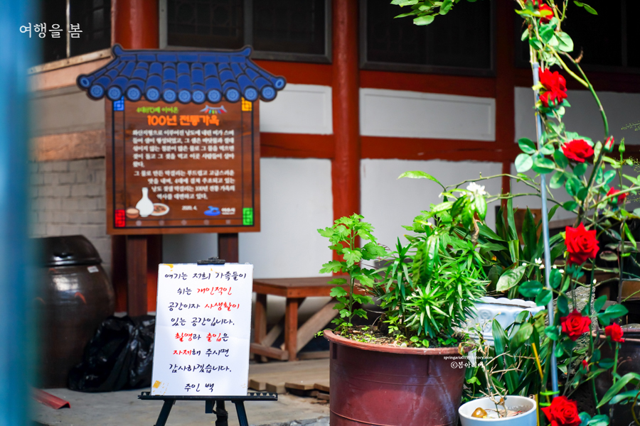 100년 전통가옥은 가족들의 개인적인 공간이므로 촬영과 출입을 금한다.