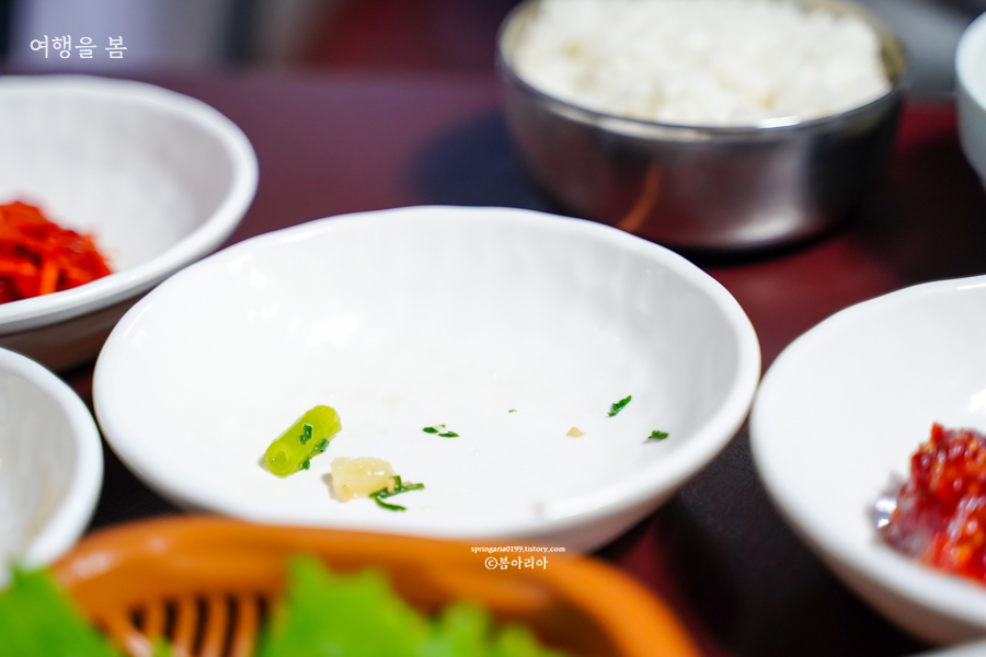 나물과 김치 반찬은 기가 막히게 맛있었다. 간도 좋았고, 나물 종류가 많다보니 당연히 국내산 재료가 많을 터였다. 반찬이 맛있어서 그릇을 하나하나 비워내는 재미도 좋다. 꼬막무침도 맛있고, 양념게장도 맛있었다. 더 달라고 하면 주는지는 모르겠으나 부족하면 다른 반찬을 먹는 식으로 하여 추가주문하지 않았다.