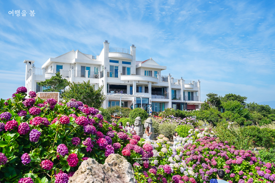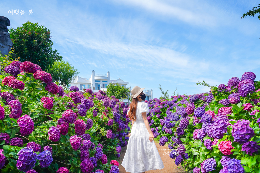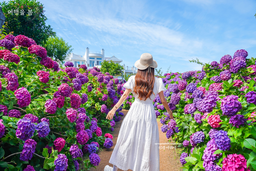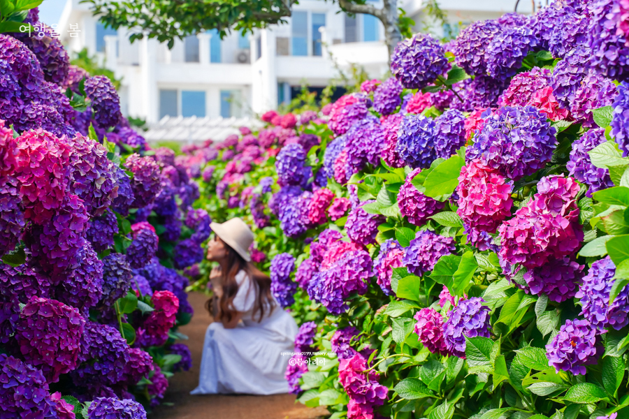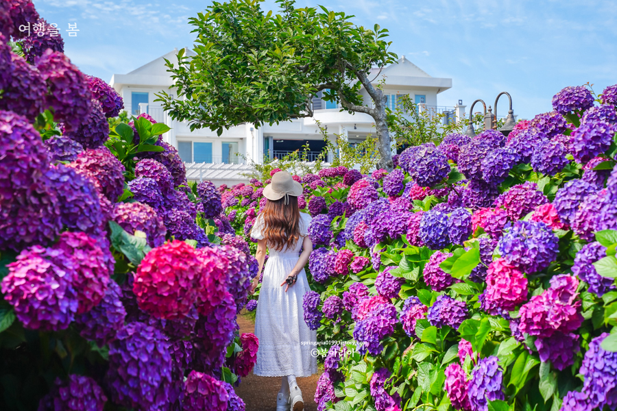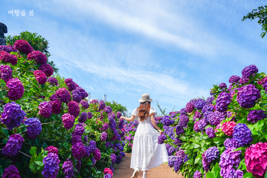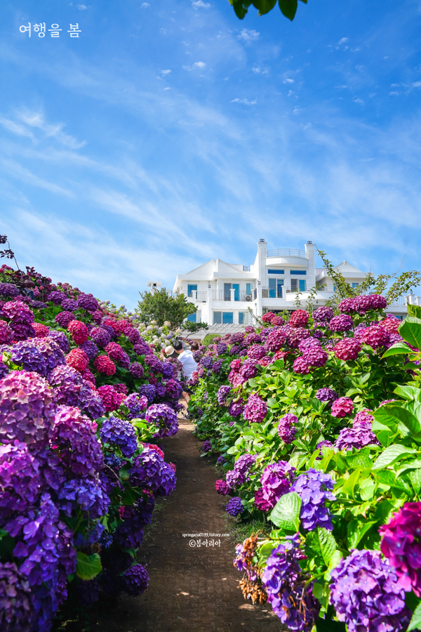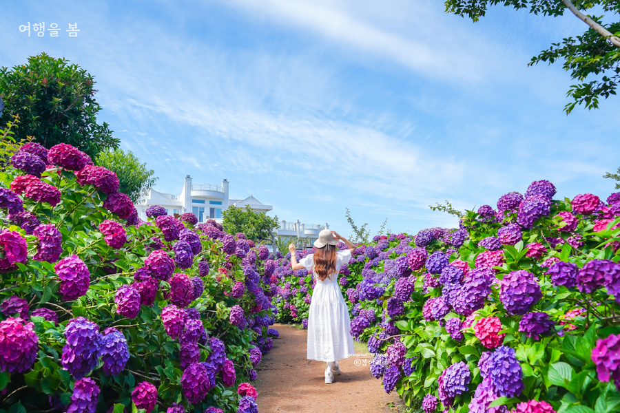 화려한 색감으로 모두의 시선을 사로잡는 마노르블랑 수국축제는 제주도 가족여행지로 최고다.