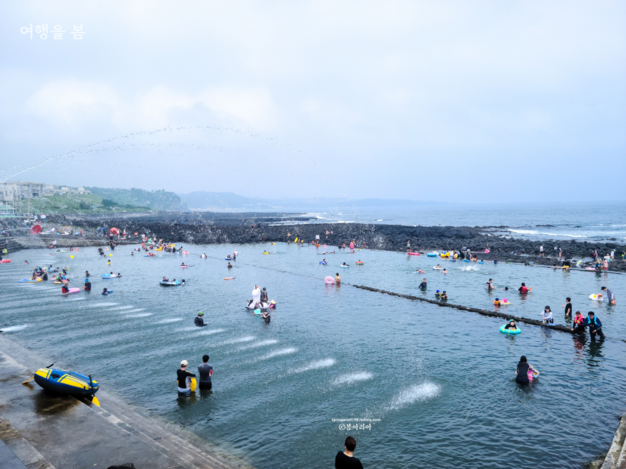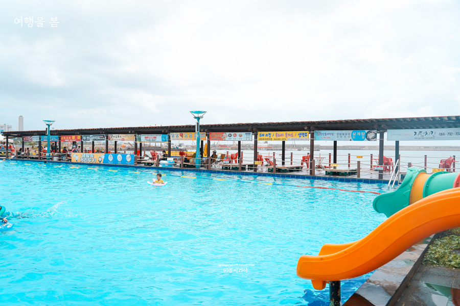 7월 제주도 가볼만한곳 10곳 중에서 잘 알려지지 않은 제주 물놀이 장소라서 사람이 많지 않다는 것이 장점이다. 지난해 물놀이 했던 모습으로 여행자들은 거의 모르는, 도민들이 찾아오는 물놀이 장소다. 물을 무서워하는 아이들이 놀기 좋은 풀장으로 수심이 다른 공간 2곳이 있고, 적당한 놀이기구도 있다.