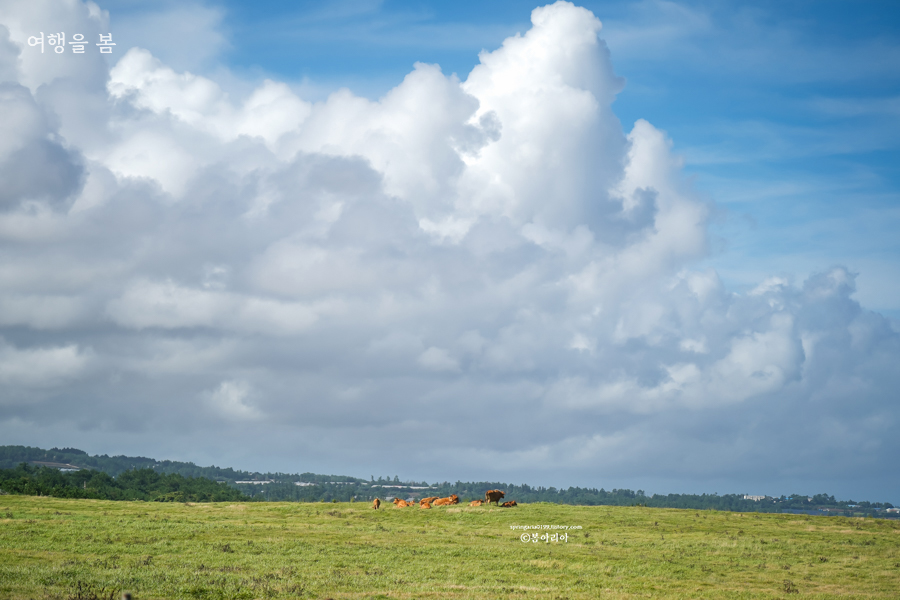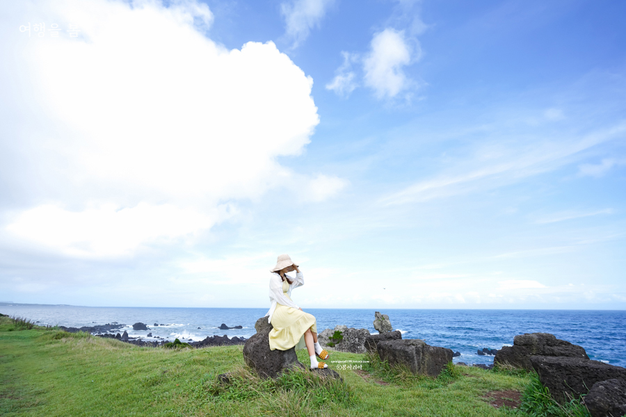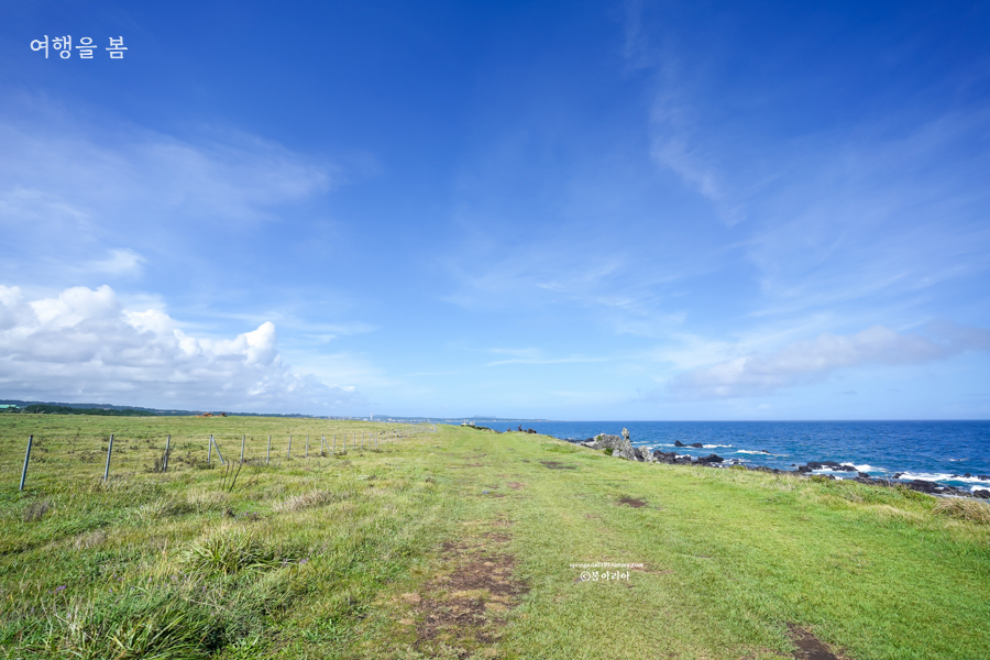 여름에는 귤피 말리는 풍경을 볼 수는 없지만 바퀴달린집 2 제주도 촬영지로 최근 큰 주목을 받고 있는 장소다. 제주 올레길 3코스로 풍경이 무척 아름답고 걷는 내내 바다를 볼 수 있으며, 구름과 바다와 초원이 끝없이 펼쳐져 이국적인 매력이 넘친다.