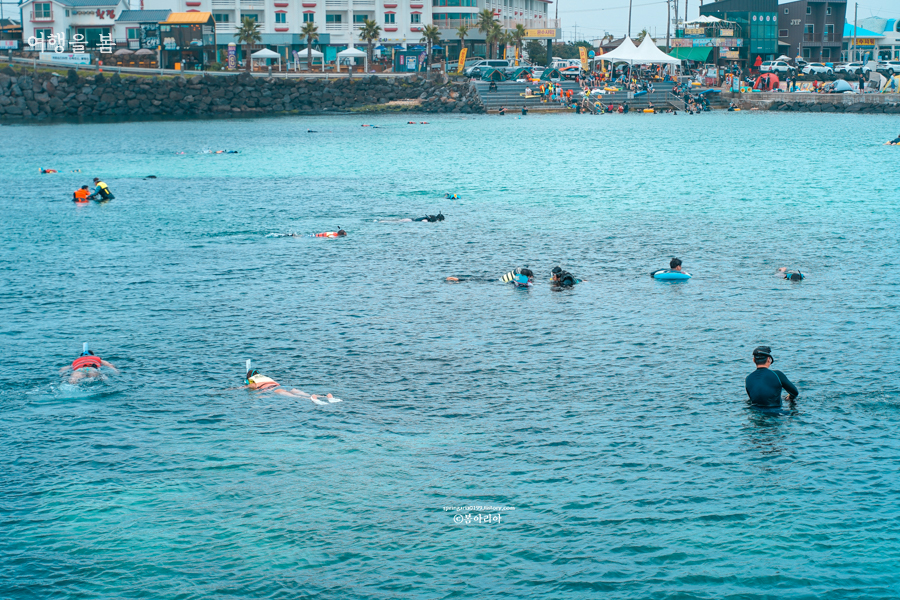 7월 제주도 가볼만한곳 10곳 최고의 물놀이 장소는 판포포구다. 이건 6월에도 그랬고, 8월에도 그럴 거다. 판포포구 물놀이는 6월부터 시작됐다. 스노클링을 해도 좋고 그냥 튜브를 타고 놀아도 재밌다. 사진처럼 공간도 워낙 넓고 주차문제도 심각하지 않다. 장비대여부터 샤워시설, 텐트나 평상대여까지 모두 가능하니까 무작정 방문해도 된다. 안전요원이 있어서 안심하고 놀 수 있고, 비양도 뷰에, 일몰까지 환상적인 최고의 장소다.