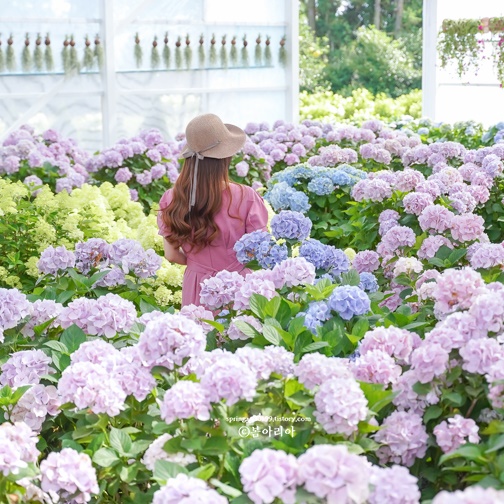 특히 온실은 파스텔톤 수국으로 언제나 화사하다. 시들지 않게 정성으로 관리하고 있어 축제기간 언제라도 인생사진을 건질 수 있는 장소다. 올해 카페쪽도 새단장해서 휴양지 느낌으로 사진찍기 좋다.