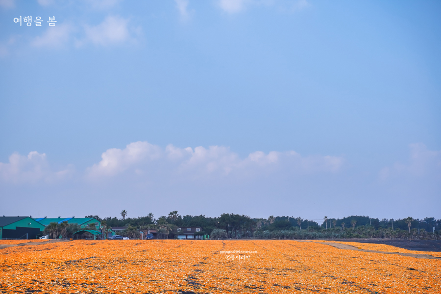 겨울에 귤피를 말려 이색적인 풍경을 선사하는 신풍신천바다목장은 겨울 12월 ~ 2월 제주도 가볼만한곳으로도 유명하다.