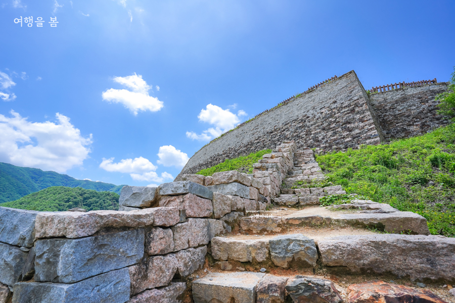 계단은 높기도 했고, 흔들거리는 것도 있어서 앉아서 찍는 것이 안전하다. 내려올 때는 조심 또 조심하고 아이와 왔다면 눈을 떼지 않도록, 여친이나 아내는 꼭 손을 잡아줘야 한다. 사이가 좋아지는 신비로운 산성이다.