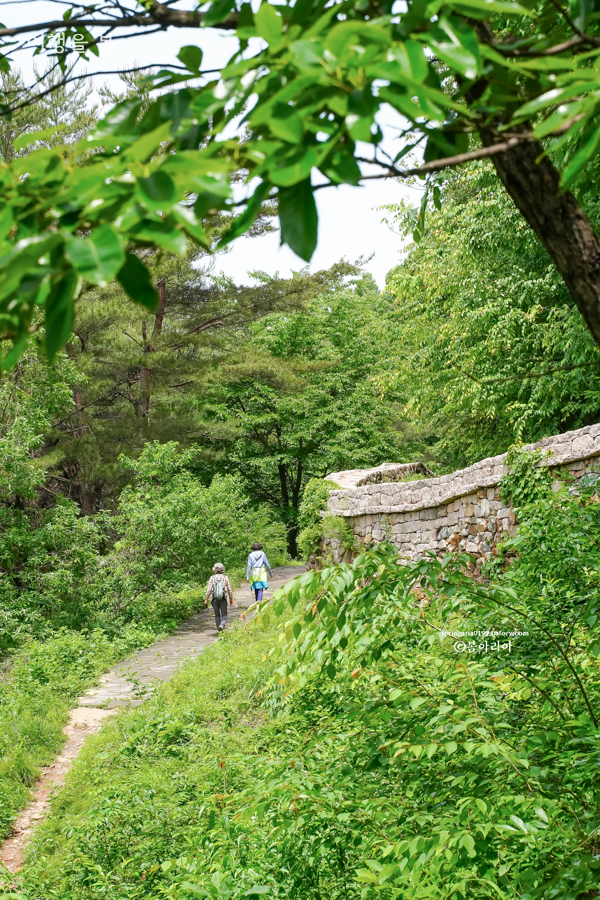 중간쯤 내려와서 바라본 문경 고모산성의 풍경이 가장 예뻤다. 가마솥 더위가 사라지고 9월이나 10월에 걷는다면 더욱 기분좋게 걸을 수 있을 것 같고, 눈이 내린 풍경도 환상적이겠다.