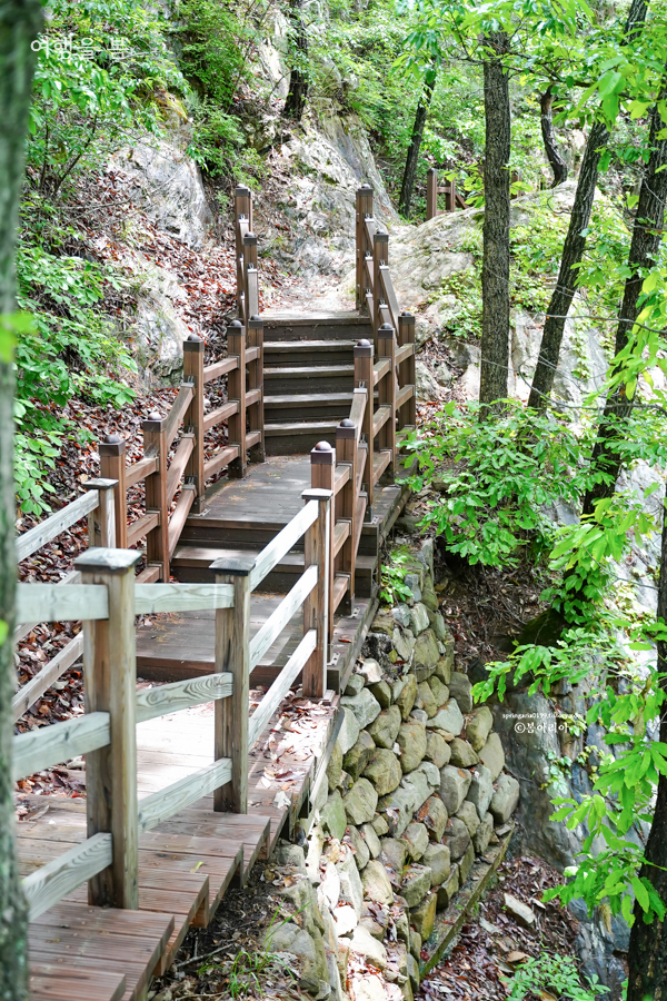 계단에 현기증이 난다면 산책로를 따라 진입할 수도 있다.