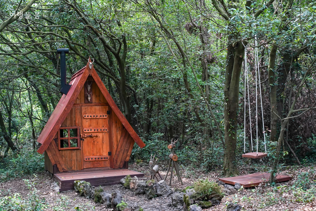 문이 열리니까 안으로 들어가거나 안에 앉아서 찍어도 좋고 뒤로 보이는 곶자왈 풍경을 함께 담아도 좋을 것 같다. 지금은 제주 숨은 명소지만 제주 핫플로 뜰 것 같은 장소가 분명하다. 곶자왈 중에서는 걷기도 좋고 마을에서 정말 정성으로 관리를 하고 단장하고 있다는 게 느껴진다.