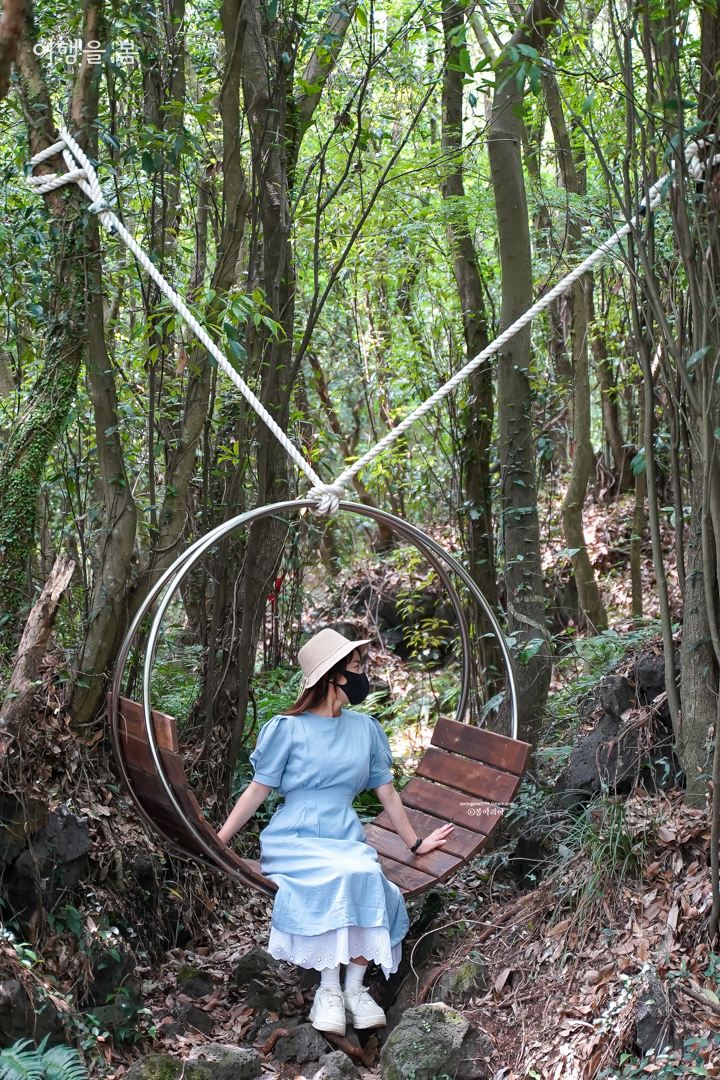 전국 어디에나 있는 그네지만 곶자왈에 그네를 설치할 수 있는 건 제주도에서만 가능한 일. 더욱 신비롭고 깨끗하고 저 뒤로는 사람이 지나갈 수 없으니 나와 곶자왈만 담는 일이 가능하다.