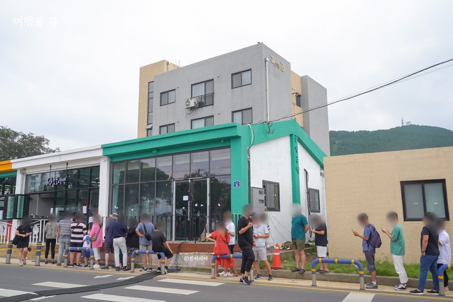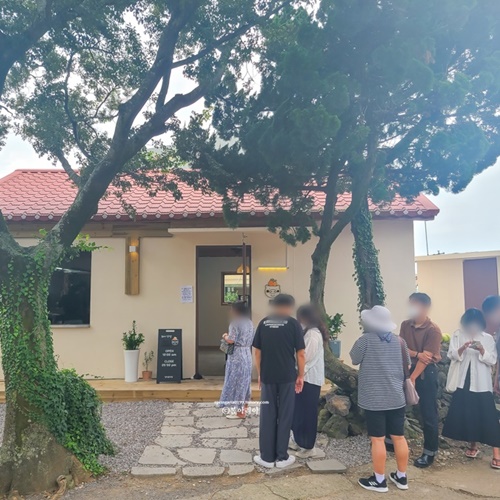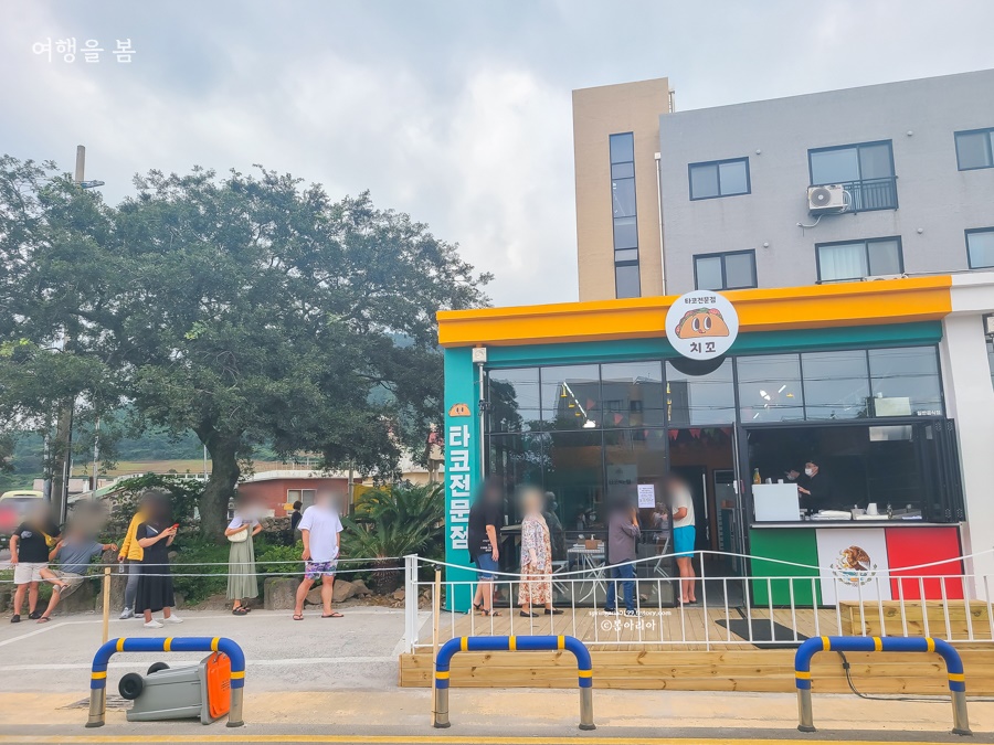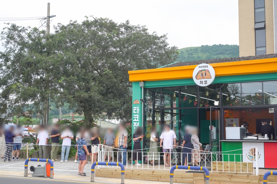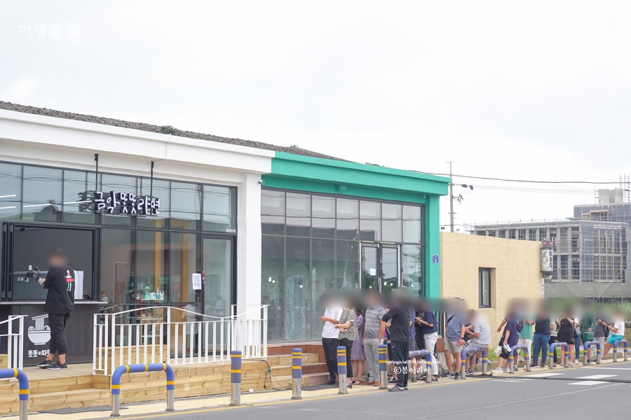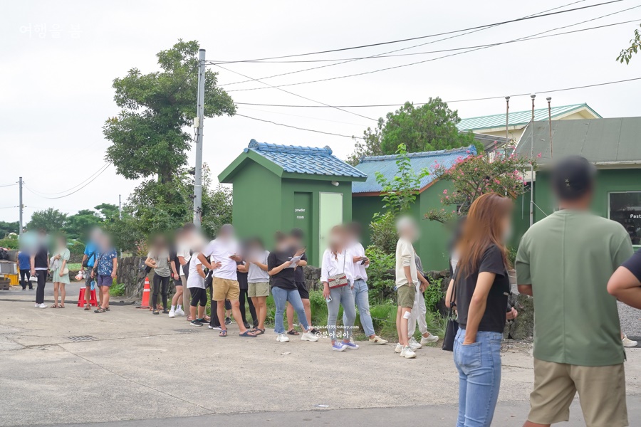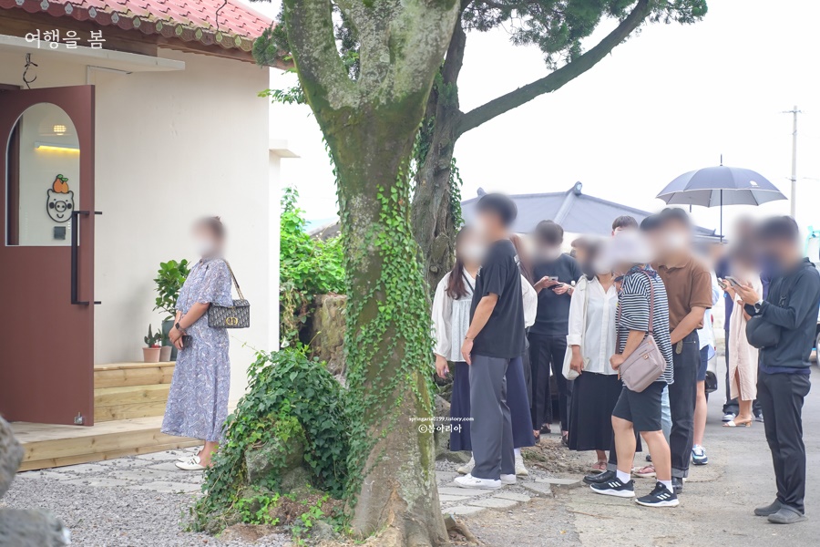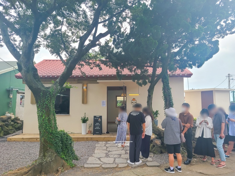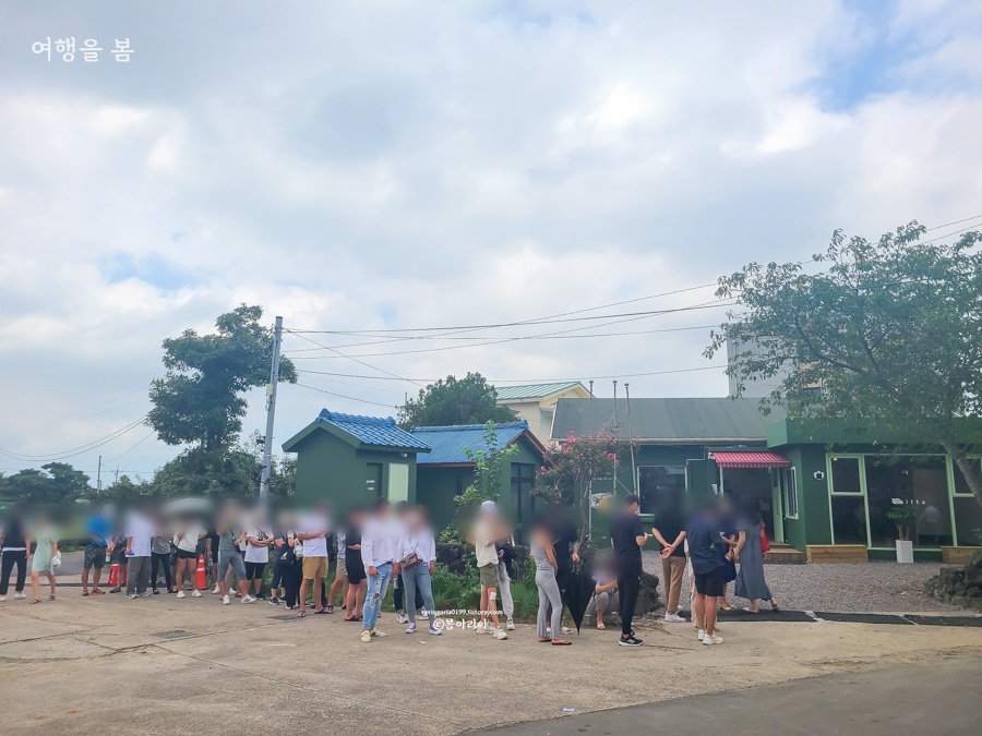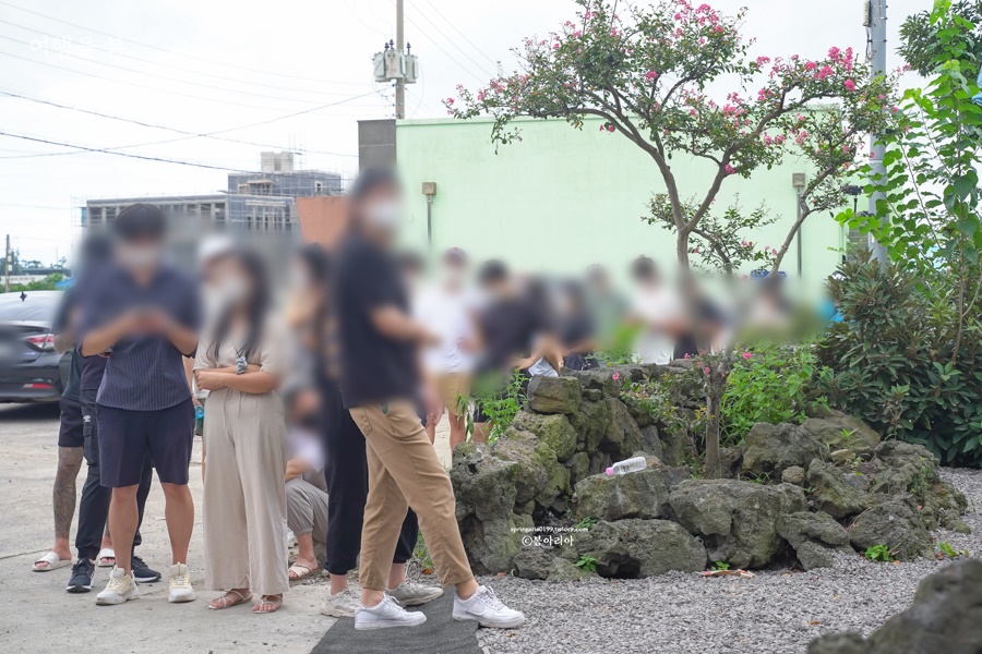 여기도 대기줄이 긴 편이었다. 앞에 나무도 있고 백종원의 골목식당 제주도 4곳 중에서 가게가 가장 예뻤다. 내부가 좁아 매장 내부 식사는 촬영 당일 몇 팀만 가능하다고 그런다. 40분 정도 기다렸다가 포장할 수 있었다.