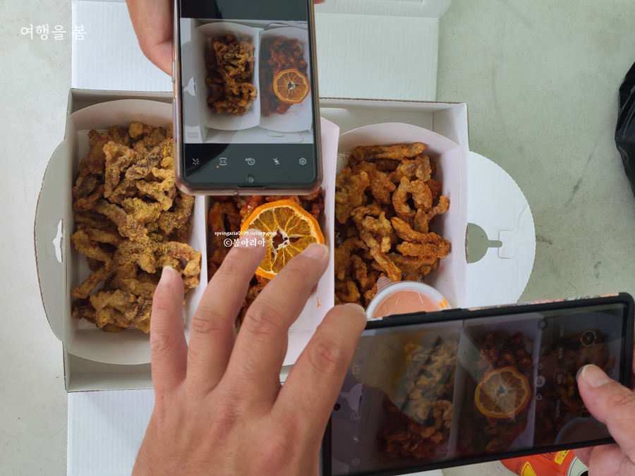 네 명이서 먹었는데 반절도 못 먹고 버렸다. 제주도 금악마을 꿀봉은 후기에서도 드러나듯 호불호가 굉장히 강하다. 이게 강정인가? 그걸 모르겠다. 속초에서 유명한 만석닭강정을 생각했다가는 큰일 난다. 초등학교 문방구에서 500원에 팔던 닭강정 비슷한 불량식품 같은 게 있었는데 비주얼도 그거랑 비슷하다.
