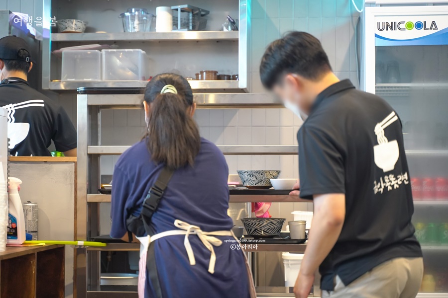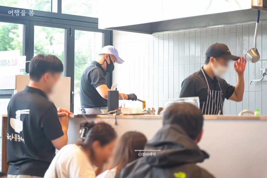 한 팀이 줄서 있을 때 뒤에 가서 기다린다. 순서가 되면 직원이 OO번 손님 들어오라고 알려준다. 오픈 날에도 줄이 길었던 금악 똣똣라면은 인기가 더 많아졌고, 골목식당 금악마을 4곳 중에서 후기가 가장 좋다. 모든 곳을 먹어본 내 후기도 같다. 금악 똣똣라면이 가장 먹을만하다.