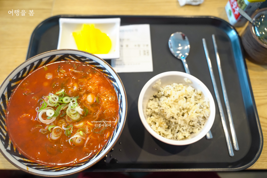 국물이 아주 맛있어서 어떤 것을 넣어도 완벽한 요리가 되겠다. 짬뽕으로도, 순두부로도, 순대전골로도. 김치 없이 단무지만 나오지만 국물이 느끼하지 않아 김치가 없어도 된다. 김치가 꼭 필요한 사람들이 있을 수 있으니 편의점 꼬마김치를 추가메뉴에 넣어도 될 것 같다.