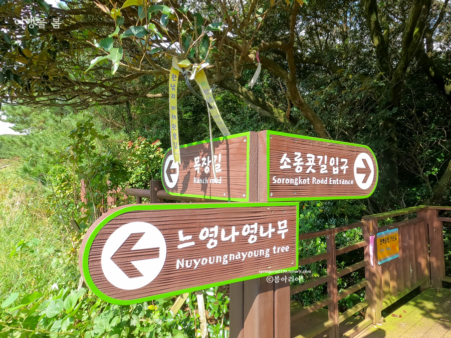 제주 머체왓 숲길 소요시간(소롱콧길) 끝까지 다녀온다면 2시간 30분이 소요된다. 끝까지 다녀오기에 시간이 부담스럽다면 치유의 숲까지 오는 것으로도 충분하다. 소롱콧 편백낭 치유의 숲까지만 다녀온다면 왕복 1시간 30분 전후다.