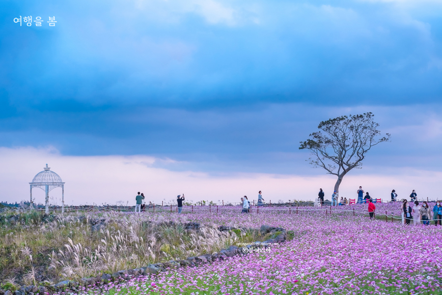 코스모스만 보자면 서부농업기술센터보다 훨씬 예쁜 신화월드 가을 코스모스 밭이 있다. 작년 가을 풍경 중 베스트 중 하나이고 사람이 많지 않아 꽃밭을 여유롭게 거닐고 사진찍기도 좋다. 위치는 서머셋 제주 신화월드 근처로 오면 보인다. 작년 기준으로 10월 초 ~ 중순 사이 풍경이었고 올해는 언제 개화할지 SNS로 최신 게시물을 확인하고 가도록 하자.
