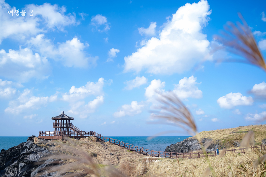 가을 제주도 가볼만한곳 10곳에 빠질 수 없는 억새! 제주 억새 명소는 오름이 대부분이지만 닭머르 해안길은 이름처럼 바다를 보며 걷는 해안길이다. 오르막, 계단이 없어 부모님과 함께하는 제주도 가을 여행코스에도 좋다. 새별오름이나 금악오름처럼 사람이 많지 않아 멋진 풍경을 곁에 두고 여유를 즐기며 비대면으로 안전하게 걷기 좋다.