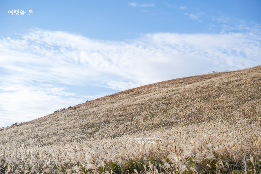 이 가을, 가장 멋진 오름이라면 바리메 오름이 아닐까? 사람 많은 곳은 무조건 피해 제주도 억새 명소를 방문하고 싶다면 바리메 오름을 올라보자. 새별오름보다 더 멋진 뷰가 당신에게 커다란 감동을 선사해 준다. 왕복 소요시간은 1시간 이상으로 잡아야하며 새별오름에 비해 난이도가 있다.