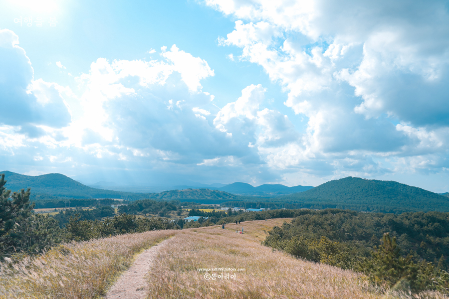 아부오름 분화구 안쪽의 숲이 우거져 둘레길을 걷는 동안 다양한 풍경을 보기 어렵다. 따라서 시간이 넉넉하지 않은 사람이라면 정상에서 바로 왼쪽으로 걸어오자. 가을 분위기 물씬 풍기는 수크령길이 있고, 걷기 수월하다.
