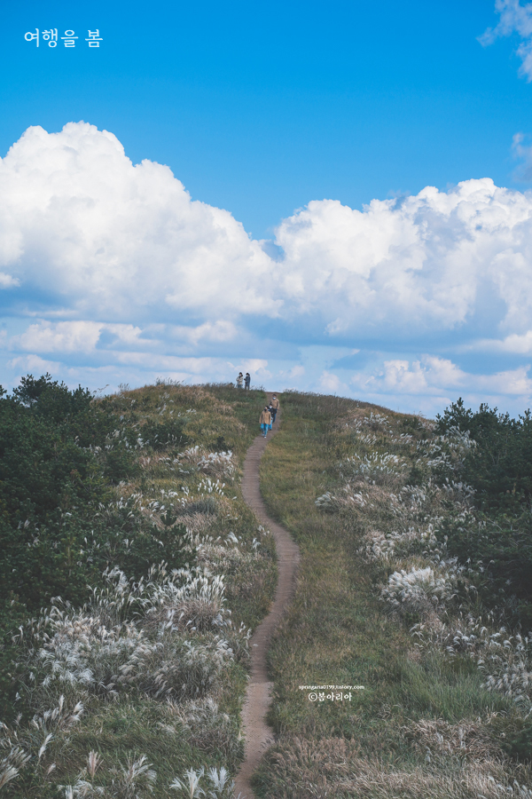 '풀을 묶어 은혜를 갚는다'는 결초보은에 등장하는 풀이 수크령이었다니. 얼핏보면 강아지풀과 비슷한데 키가 더 크고 색감도 독특하다. 그늘지면 약간 보랏빛을 보이고 햇볕이 쨍하면 억새 같은 느낌도 난다. 쉽게 올라 능선 가득 피어난 수크령길을 걸을 수 있는 아부오름 소요시간과 억새와 수크령이 절묘하게 조화를 이루고 있는 백약이 오름까지 하루에 거뜬하게 올라보자.
