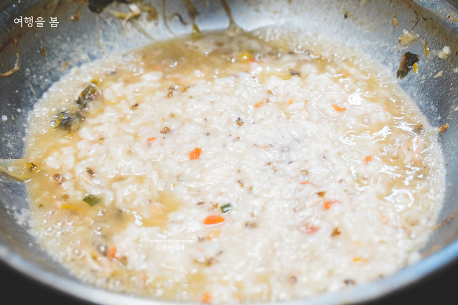 배가 불러 닭죽은 1인분만 달라고 했다. 그릇에 내주는 것을 그냥 먹는 것보다 닭백숙을 먹고 난 냄비에 살살 볶듯이 조금 졸여서 먹으면 더 맛있다.