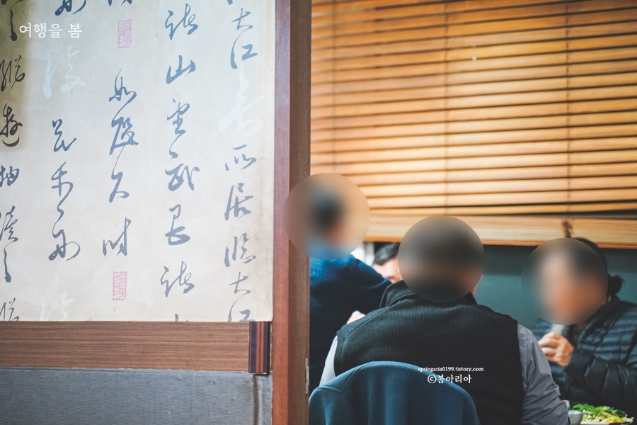 오후 6시부터 7시까지가 절정이고 이때 자리가 없으면 여기에서 밥을 못 먹는다고 보면 될 것 같다. 그래서 예약이 필요하다. 6시에 갔을 때는 빈테이블이 2개쯤 있었고 빈테이블도 예약손님이었으므로 우리도 예약 안 했으면 못 먹을 뻔 했다. 홀에 테이블이 10개쯤이었고, 방으로 4테이블이 더 있다고 했다. 당연히 방쪽은 이미 만석이다. 영업시간은 10시까지지만 대부분 8시 전후로까지만 손님을 받는다고 그런다. 식사하는 시간이 긴 음식이라.