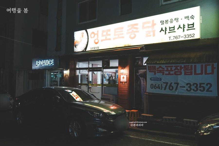아저씨가 저녁 6시로 예약을 해놨고, 진짜 예약 안 하고 갔으면 어쩔 뻔? 저녁 쫄쫄 굶을 뻔 했네. 관광객 1도 없고, 무슨 동문회 온 것처럼 '나는 거기 몇 회 졸업생'이라며 서로 반갑게 인사하는 찐 서귀포 현지인 추천 맛집 '엉또 토종닭 샤브샤브'다.