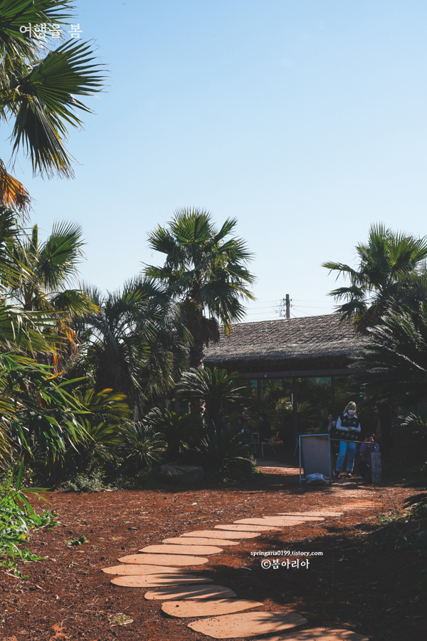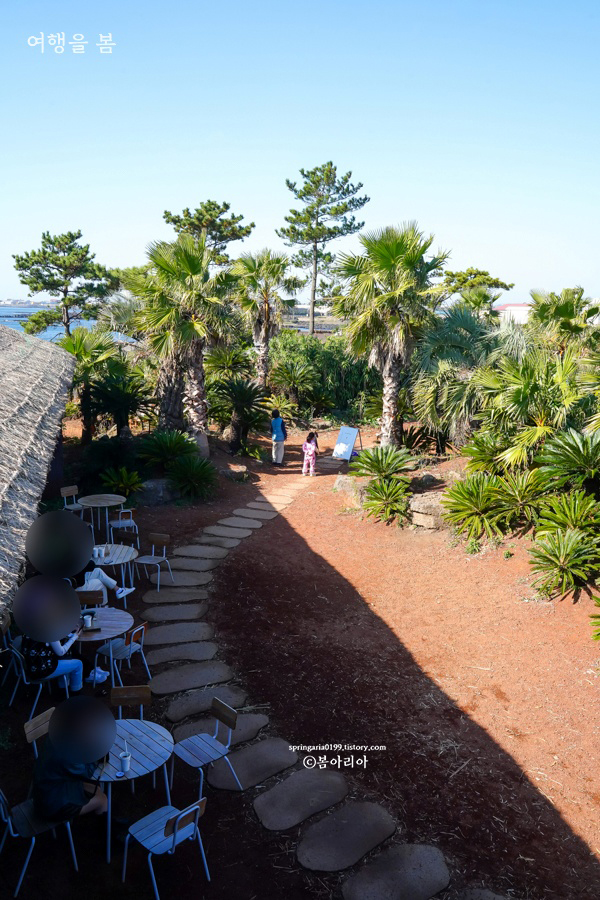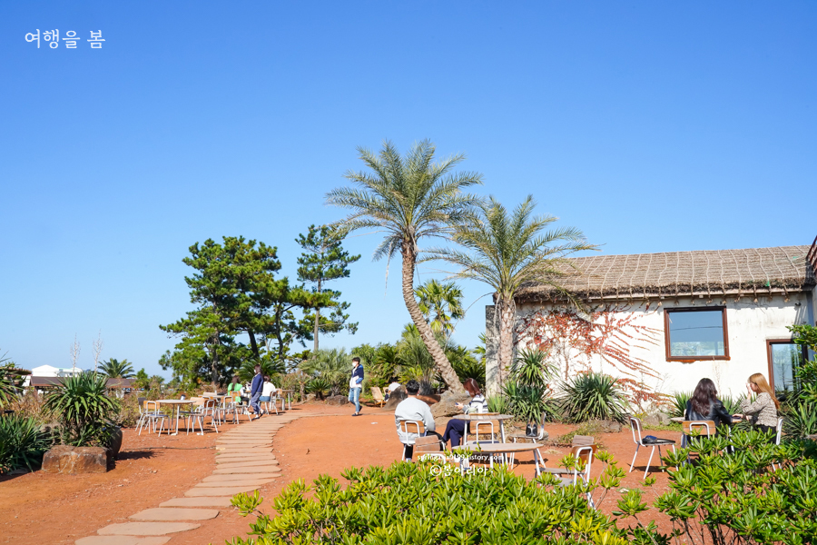 뒤쪽으로 가면 더 이국적인 공간이 있다. 하지만 이런 풍경도 애월 카페 팜파네가 훨씬 예쁜 것 같고 넓고, 바다뷰도 좋다. 디저트도 진짜 많고. 애월 카페거리의 복잡함을 피할 수 있고, 이국적인 풍경을 볼 수 있고, 해안길 산책이 가능한 인스밀 카페, 보리개역을 맛보고 싶다면 방문의 가치는 있지만서도 맛과 풍경 모두 조금씩 아쉽다. (재방문 의사 없음!)