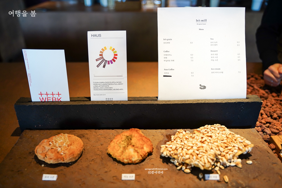 커피 종류가 적다. 카페에서 맛있는 커피를 먹고 싶다면 다른 곳을 가는 것이 좋겠고, 디저트도 보리와 마농을 활용한 게 전부다. 돌려 생각해보면 제주를 대표하는 걸로 만든 메뉴이니 특별하게 여겨볼 수도 있겠다. 1박 2일 촬영지 제주도에서도 보리개역이 소개되었다. 보리개역과 보리스콘을 주문해본다.