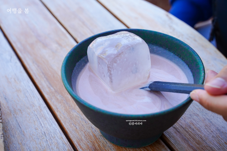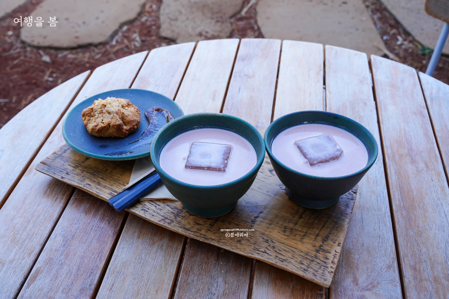 스콘은 역시 내 입맛이 아니다. 먹을 때마다 퍽퍽한 느낌이 싫으면서 가면 주문해보는 이상한 심리. 보리개역은 보리 미숫가루다. 육지에서 미숫가루는 쌀, 찹쌀로 만들지만 제주에서는 쌀이 귀하니 쌀 대신 보리로 미숫가루를 만들고 이것을 보리개역이라고 부른다. 큰 얼음이 있어 더운 여름에 잘 어울리겠고 추운 겨울엔 별로다.