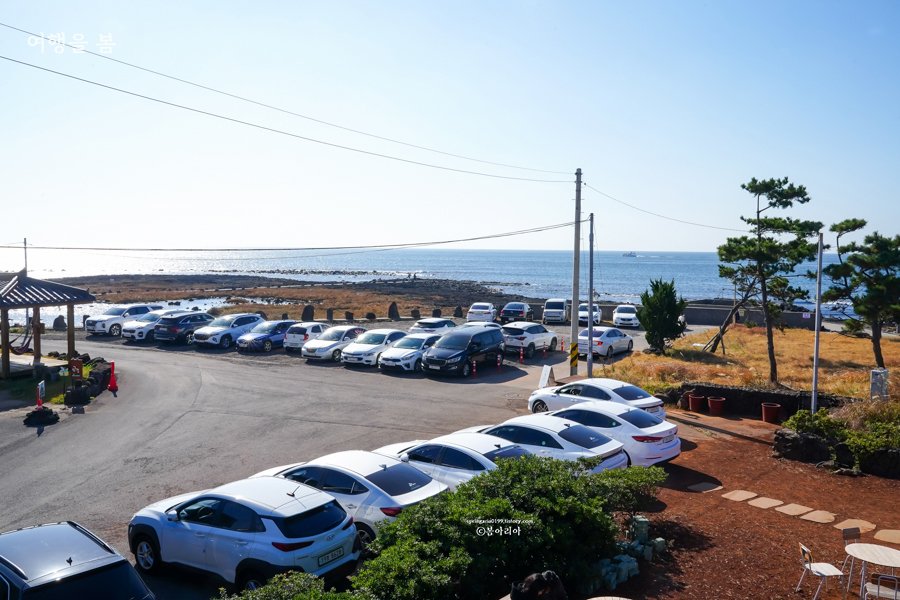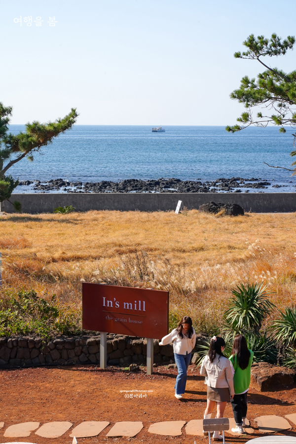 주차장은 넓은 편이라서 큰 걱정 없이 방문해도 좋겠다. 햇볕이 따스한 날에는 테이크아웃해서 바다보며 산책하기 좋은 위치에 자리하고 있는 제주 인스밀.