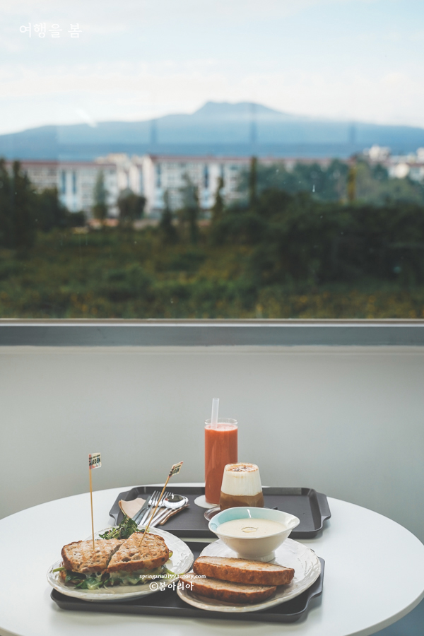 카페로서의 뷰와 맛, 쉼이 모두 가능했기에 요즘 제주도 카페 가볼만한 곳 중에서 가장 마음에 들었던 곳은 카페와일드가든이다. 뷰도 좋았지만 음료와 디저트(디저트라 하기엔 요리 수준)가 최고였고, 흑돼지 샌드위치와 감자 스프는 진짜 ㄷㄷㄷ 완전 맛있다. 한라산 보면서 먹을 수 있어서 더 좋다.