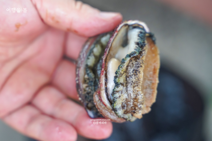 전복은 양식이라 내장을 먹지 않지만 제주 오분자기는 자연산이기에 내장도 먹는 게 좋다하여 저 상태로 먹었더니 전복과는 식감부터가 다르다. 질긴 식감이 적었고 바다의 향이 그대로 느껴진다. 아, 이것이 제주 오분자기구나. 제주 토박이도 초특급 흥분하는 오분자기, 나는 이제야 처음으로 먹었네.