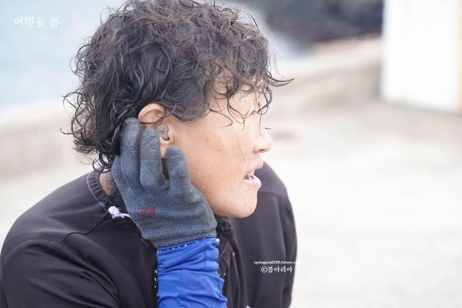 물질 경력이 40년도 넘었는데 막둥이라며, 상군 해녀는 엄두도 못낸다고 그러신다. 오늘은 귀가 아파서 일찍 나오셨다며 성게를 조금밖에 못잡았다고.