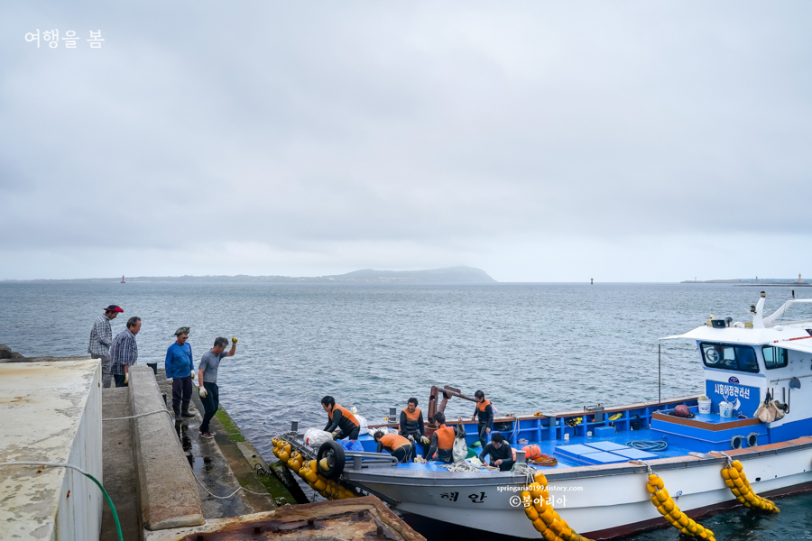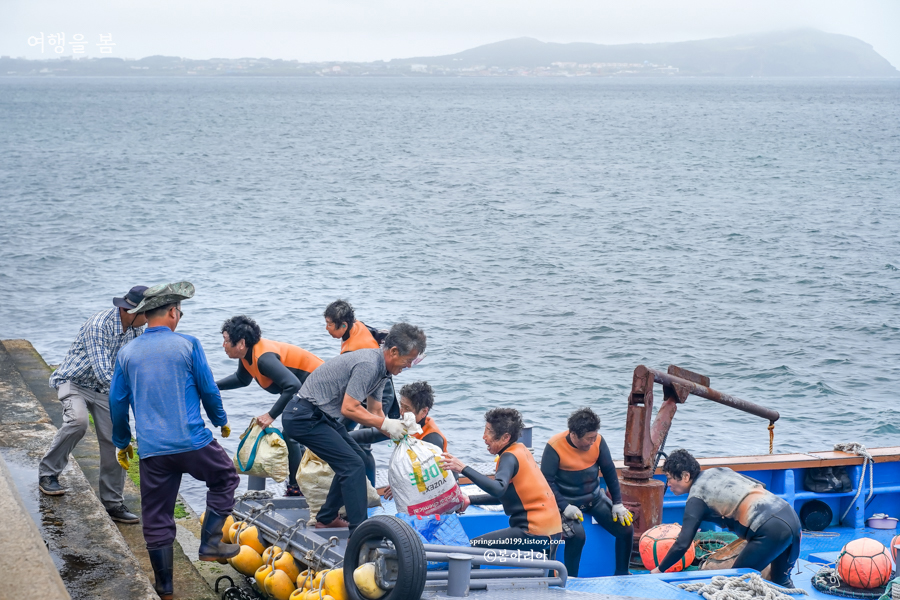목적은 제주 오분자기였다. 오분자기는 제주 특산물로 과거에는 제주도 전역에서 많이 잡혔지만 현재는 성산일출봉과 우도 사이에서 주로 잡힌다고 그런다. 제주 서쪽은 양식장이 많아 오염이 심해졌고, 동쪽은 그나마 양식장이 적어 이 일대에서 해녀들의 물질로 제주 오분자기를 볼 수 있다고. 아, 물론 제주도 다른 지역에서도 나오지만 그 양이 아주아주 적다고 그런다.
