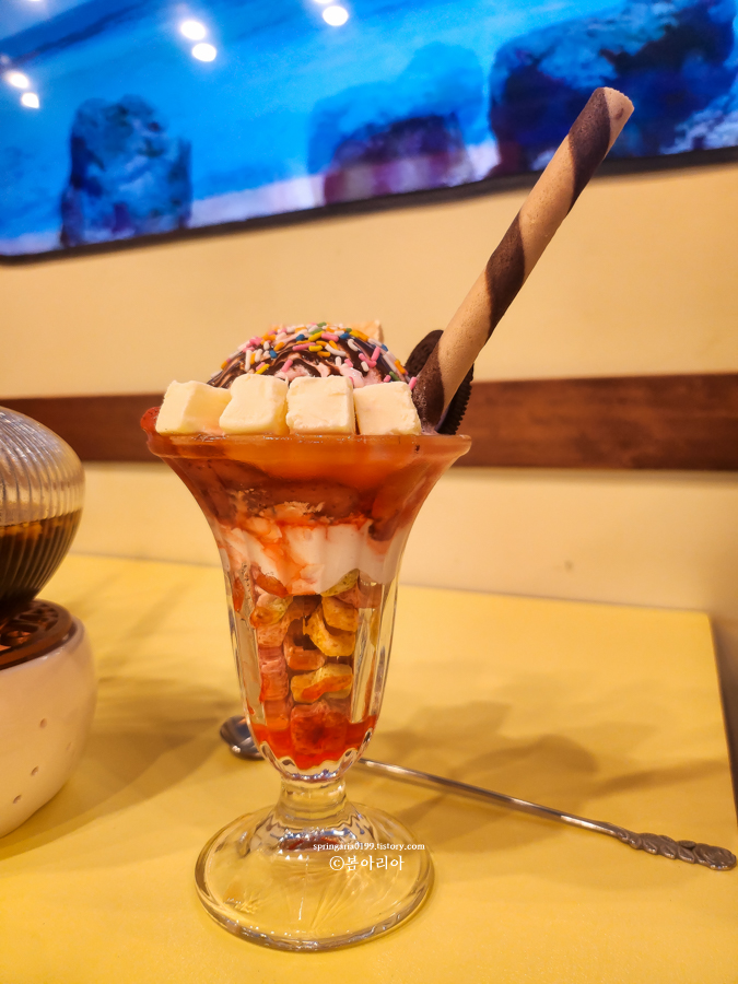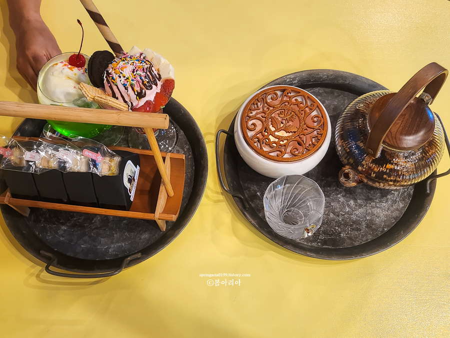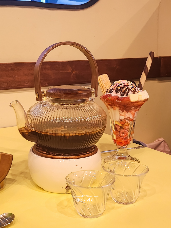 여기는 파르페가 맛있다. 메론크림소다는 색깔만 예쁘고, 옛날 쌍화차는 직원분이 쌍화차 만드는 광경을 목격해버린 언니 덕분에 다소 실망스러운 메뉴가 됐다. 그래도 부채표였을걸?