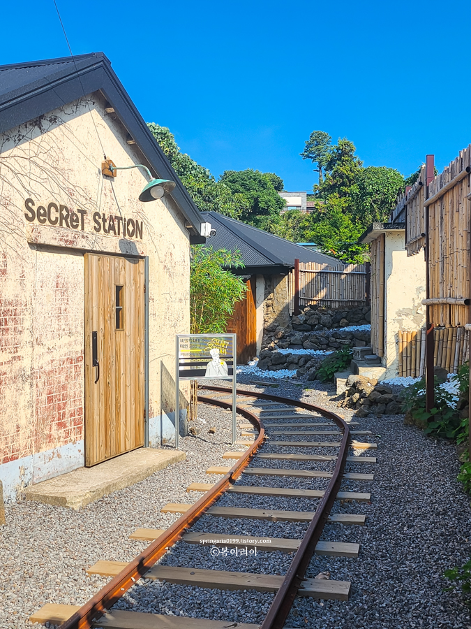대형카페가 널리고 널린 요즘이라 아담한 카페는 빛을 보기 힘든 요즘. 일본 분위기에 제주만의 감성까지 담아낸 비밀역 카페. 제주에서 보기 힘든 기찻길, 그리고 내부는 앤틱하면서 경성시대 느낌도 있어 부모님과 방문하기에도 좋다. 친구들끼리 방문해도 인생사진 찍기 괜찮은 카페다.