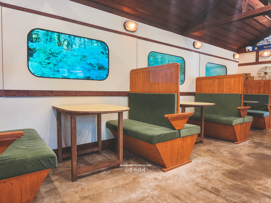 두번째와 세번째 건물 내부다. 두번째 건물보다는 세번째 건물 내부 분위기가 더 앤틱해보였고, 일본 느낌이 한스푼 더 있어서 괜찮았는데 언니들이 기차 내부 좌석에 앉고 싶다하며 본건물에 자리를 잡았다.