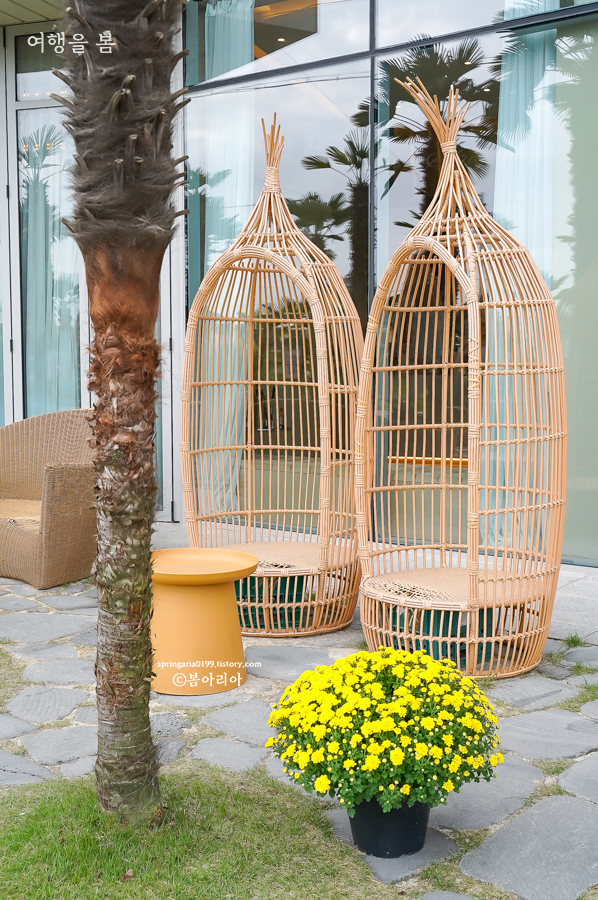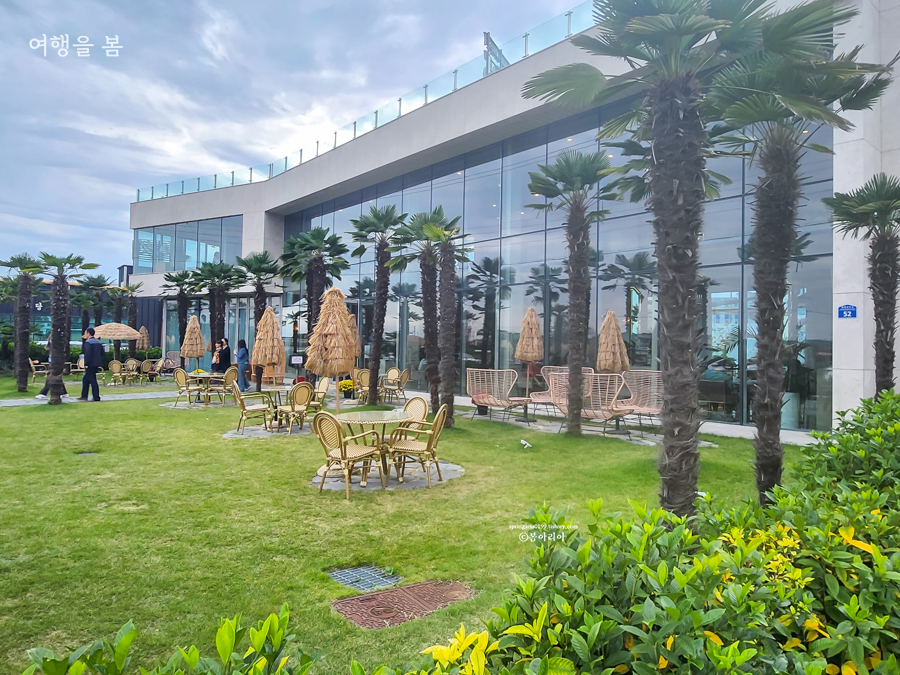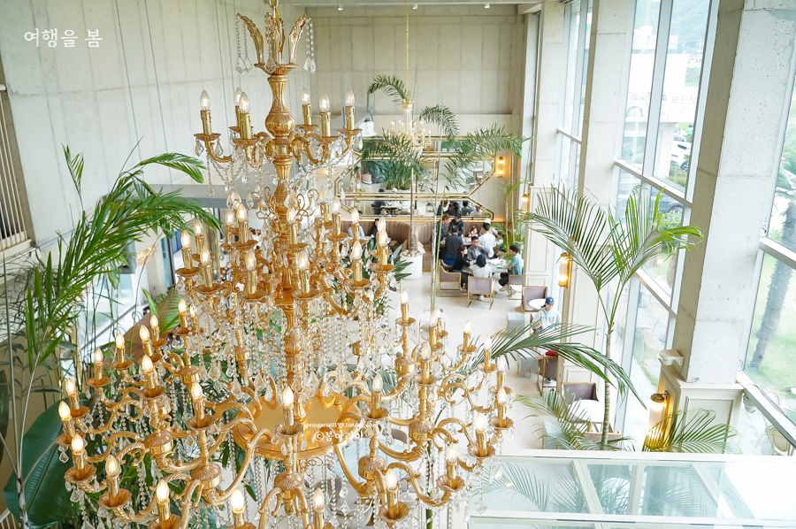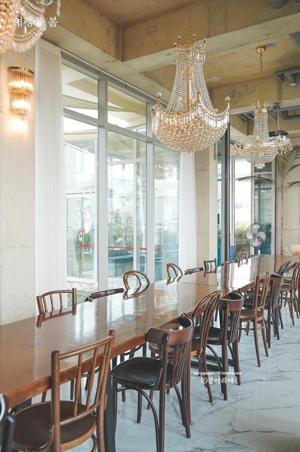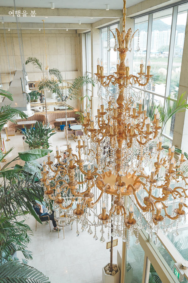 특별한 포토존은 없지만 층고 높은 2층 카페로 대형 샹들리에가 눈길을 끈다. 테이블 간격도 넓고, 좌석도 예쁜 편이다. 2층보다는 1층 좌석이 많다. 2층은 함평천이 내려다보이고 계절에 따라 색다른 풍경과 꽃을 볼 수 있다. 2층 창가 쪽 자리가 인기 많으니 1시간 정도 머물다 갈 생각이라면 주문보다 2층 창가 자리를 선점하는 것이 중요.