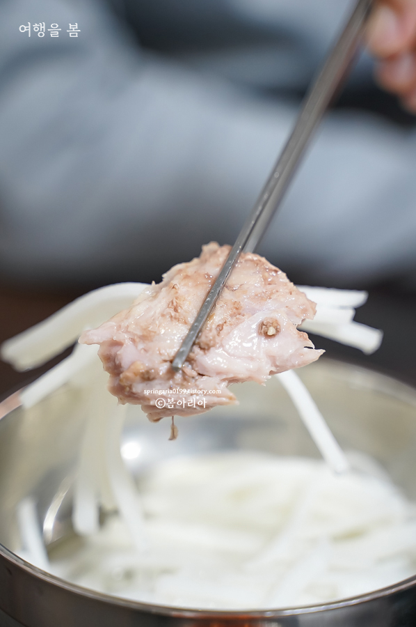 서비스로 나오는 돼지 등뼈가 아주 맛있다. 이름 좀 있는 감자탕집에서 나오는 고기보다 더 보들보들하고 냄새도 안 난다. 어디 축제장에 가면 먹을 수 있는 통바비큐 고기 느낌이랄까? 삶았는데 숯불향도 있고, 육즙도 가득이다. IMF 이후부터 서비스로 20년 넘게 제공하고 있다는 것도 마인드가 좋고, 서비스인데 이렇게 질 좋고 맛 좋게 준비하는 것을 높이 평가해주고 싶은 곳이었다.